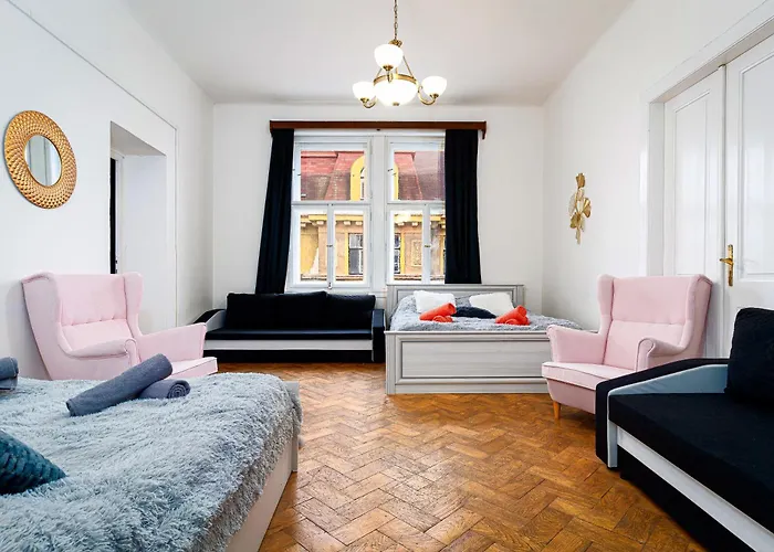 A 152 m²-es Victory Belle Maison Prága apartman Prága Kisoldal (Malá Strana) körzetében található, és a vendégek számára pénzautomatát és valutaváltót biztosít. A Žižkov-torony 2 km-es távolságra, a Svandovo divadlo buszmegálló pedig csaknem egy 5 perces sétára van az ingatlantól.